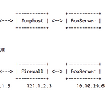 위와 같이 중간에 방화벽이 있는 경우에 해당 방화벽이 있는 서버를 거쳐 원격 서버로 접속해야하는 상황이 되었다.이 경우 접속방법을 알아보자. [ 로컬피시에서 방화벽 서버를 거쳐 원격 서버로 접속하는 방법 ] 1. .ssh/config 파일을 편집기로 실행하여 아래와 같이 입력하고 저장 Host firewall-server hostName 121.1.2.3 User jbk IdentityFile ~/.ssh/jbk_firewall_server.pem Host foo-server hostName 10.10.29.68 User ubuntu IdentityFile ~/.ssh/jbk_dev.pem ProxyCommand ssh firewall-server nc %h %p %r - host : 서버 이름 ( ex..